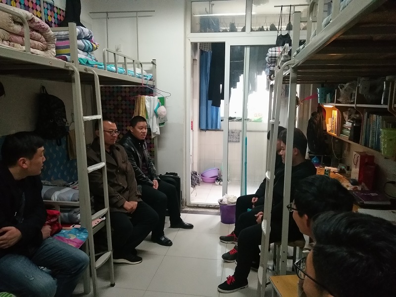 在走访过程中,老师们对寝室内物品摆放整齐,卫生干净整洁的宿舍给予了表扬肯定;对内务稍差的宿舍进行了教育指导。同时,老师们与员工进行了亲切沟通交流,了解了学期初员工学习生活状况,走访过程中,老师们鼓励同学们一要加强宿舍文化建设,共同创造良好的学习生活环境;二要努力学习,制定新学期学习和学业规划;三要加强实践锻炼,不断强化自身综合素质。