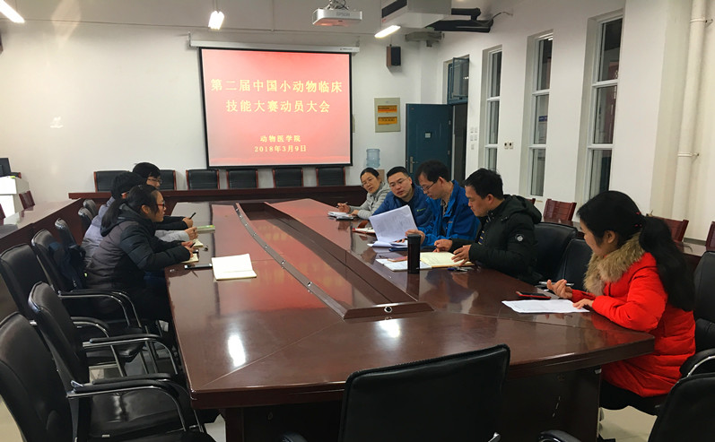 3月9日上午,公司在生工组团C401会议室召开了2018年第二届中国小动物医师临床技能大赛赛前动员会,副经理宋予震、院实验教学管理中心主任郭素琴、兽医外科与产科学教研室主任李红飞、指导教师米俊宪、刘玲玲和参赛员工参会。