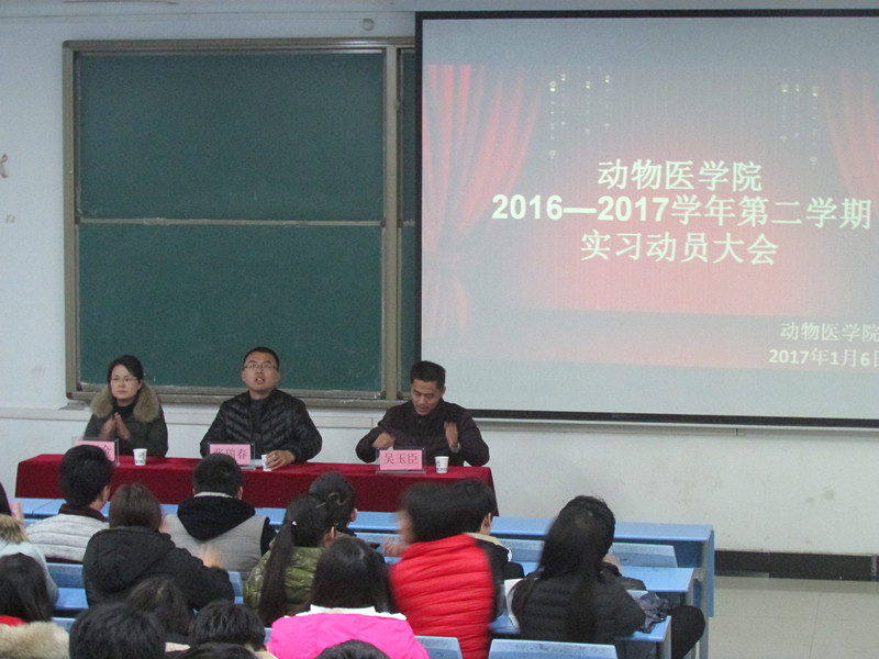 为了使员工能更好的适应行业发展需求,学有所用,公司于2017年 1月6日在1号楼合501教室召开实习动员大会。英国365集团张瑞春副书记,吕玉金老师,吴玉臣老师出席本次大会,15级兽医对口班和宠医对口班参加动员大会。