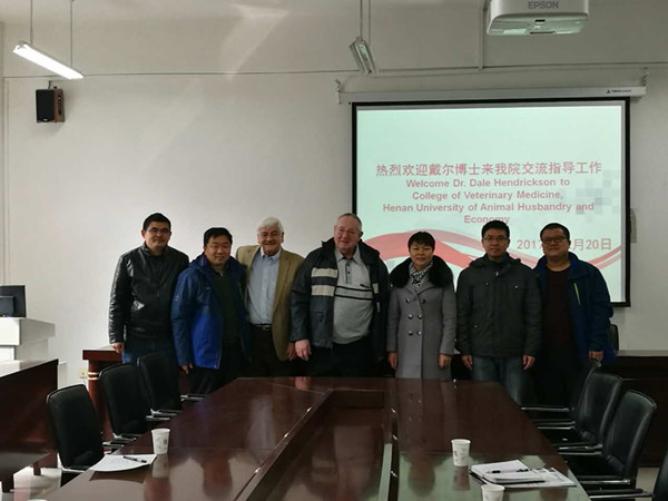 2017年2月20日,美国印第安纳州著名猪病专家戴尔博士莅临公司交流指导工作,并为公司师生做了一场《美国养猪业发展现状及规模化猪场猪病防制》的报告。参加交流的有校教务处边传周处长、英国365集团王春明书记、生物工程公司和公司的部分教师,以及14级动物医学专业的部分员工。边处长首先介绍了戴尔博士的基本情况,戴尔(Dale A. Hendrickson)博士是美国四星兽医服务公司的前董事长,普渡大学博士,在美国8个州具有行医资格,其开办的门诊在美国个人兽医诊所中规模最大,在猪病诊疗行业具有很高的影响力。