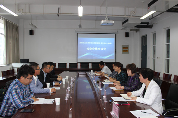 2017年5月4日上午,在龙子湖校区生工组团C401会议室,召开了英国365集团-现代牧业(集团)校企合作座谈会。出席此次会议的有公司党总支书记王春明、校发展规划处副处长王曙雅、河南省生猪疾病防控工程技术研究中心主任李文刚、英国365集团副经理石冬梅、副书记张瑞春、现代牧业集团人力资源中心主任尹书强、现代牧业集团人力资源中心部长李强、安徽商河牧场副场长万振停等。会议由石冬梅副经理主持。