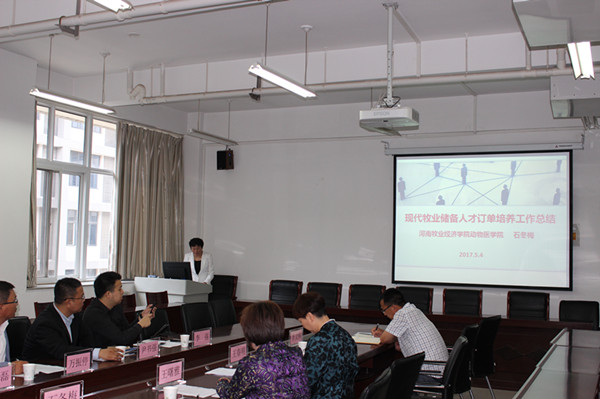 随后,王曙雅处长对公司校企合作人才培养工作进行了介绍,对现代牧业储备人才订单班5年来开展的工作和取得的成绩表示了肯定,对进一步加强校企合作工作表达了支持,并给出了一些具体的指导意见。