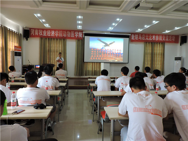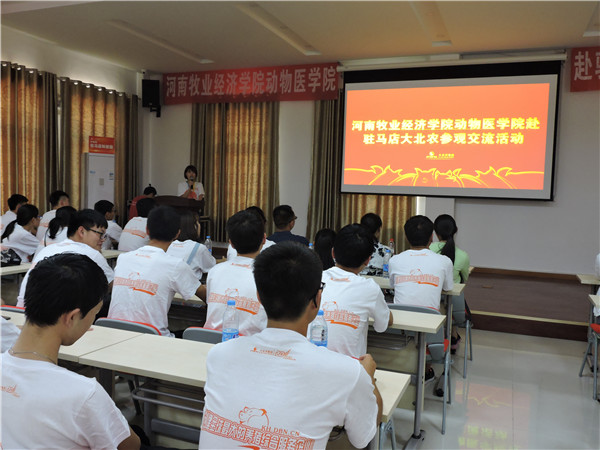 师生一行抵达科技园后,首先由大北农集团驻马店科技园基地总经理黄梦川致辞,他对公司师生的到来表示热烈的欢迎,表示此次活动意义非凡,并合影留念。