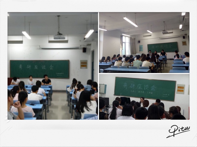 交流会上,13级的同学本着认真负责的态度,结合自己的切身经历,讲述了从刚开始的选专业选公司,到考研网上报名、复习规划、考研复习怎样的书籍、以及考研所要具备的心里素质等,都作了详细的介绍,并谈到选择考研是是挑战自我,更是人生砥砺的开始,希望各位学弟学妹们能尽早找到自己的人生路线,及早规划自己的考研之路,做到心中有考研,行动上有考研,做出无愧于内心的选择。最后,13级的学长学姐给学弟学妹们提出了在考研道路上的几点希望:一、要脚踏实地,慢慢积累,不可急于求成。针对自己的情况作出一个高远而不盲目,详细却不拖拉的考研计划。二、戒骄戒躁,用自己坚定的意志,克服自己的浮躁心理,偶尔放松,找到适合自己的学习方法,稳扎稳打一步一个脚印的走到最后。