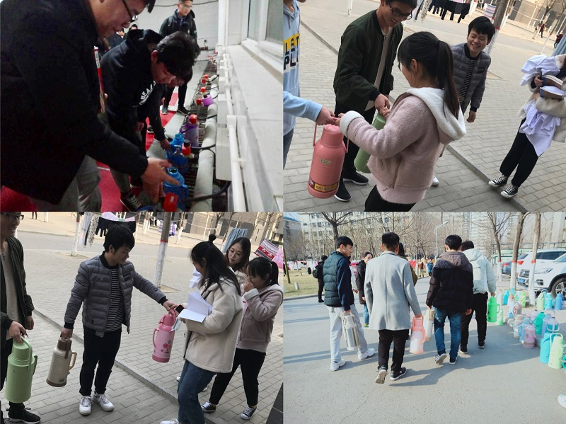 此次女生节活动主要由“你的热水我来提”和“观影游戏活动”两部分组成,此次活动得到了同学们的积极响应,女生节当天,公司各班男生在班长和心理委员的带领下,不辞辛苦地将班级女同学水瓶一个一个接满水又配送到各班级女生宿舍楼下,在寒冷的季节里给女同学们送去一丝温暖。