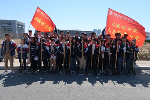 当天十二点半,18级宠物01班,18级兽医01、02、03班的同学们刚下课,就在辅导员付文凯老师的带领下,带上植树工具,来到了校北门西边的空地上。分拣树苗、花枝,抡锄挖坑,手扶树苗,挥楸培土,志愿者们分工合作,热火朝天,各个环节衔接有序,配合默契。大家干劲十足,脚上、裤腿上都沾满了泥土,但劳动的快乐洋溢在脸上,一个半小时很快过去了,一万多颗四季青和月季都在这片空地上找到了自己的位置,迎风摇曳,为校园增添了勃勃生机。看着自己亲手种植的一棵棵象征希望的树苗,很多同学都激动地掏出手机,记录下这难忘的经历。参加植树活动的志愿者说:“植树节不仅仅只是一个节日,最重要的是要引起我们植绿、爱绿、护绿的意识。植树不易,护绿更难。”