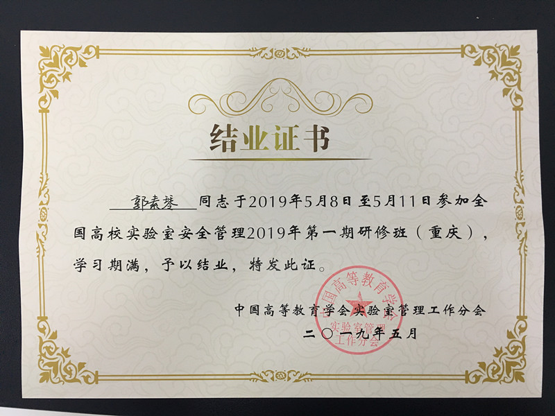 通过此次研修班的学习,学员们对国家和教育部关于实验室安全工作的要求有了更深层次的认识,学到了一流大学在实验室安全管理方面的先进经验,开阔了视野,提升了实验室安全管理的知识水平,并且获得了中国高等教育学会实验室管理分会颁发的结业证书。