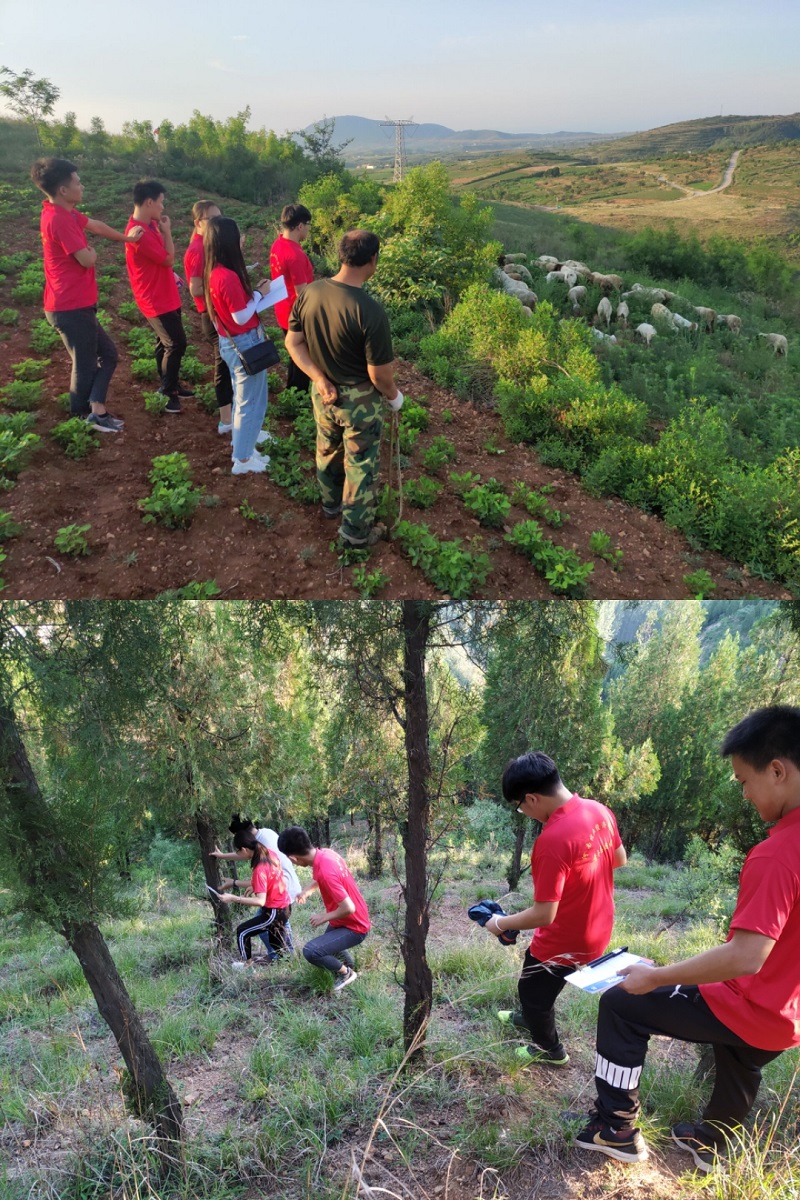 同学们到达养殖户家中时,养殖户已经出去放羊,迎着初升的朝阳、伴着山间的薄雾、踏着羊群走过的足迹寻找到养殖户放羊所在的山头,与养殖户亲切交谈。交谈中,同学们了解了散养户村民的养殖规模、养殖利润、羊群存活率等相关问题,并记录了关于养殖过程中羊出现的各种问题,同学们告诉养殖户请教过专业教师会给予回复。调查结束后,付老师和同学们沿着村民放牧常走的崎岖小道回到住宿地,途中深深感受到了村民们放牧之路的艰辛和曲折。
