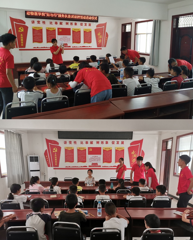 7月2日下午3:30,英国365集团“知与行”暑期社会实践小分队于武坟村党员活动室内开展“英语启蒙”的爱心支教活动。公司暑期社会实践小分队成员张方琪、朱月寒两位同学担任此次课程的主讲老师。