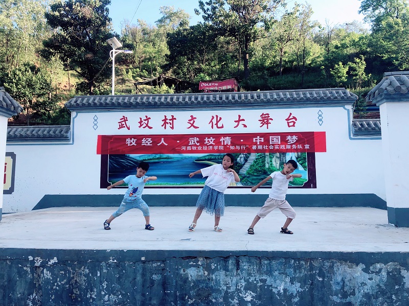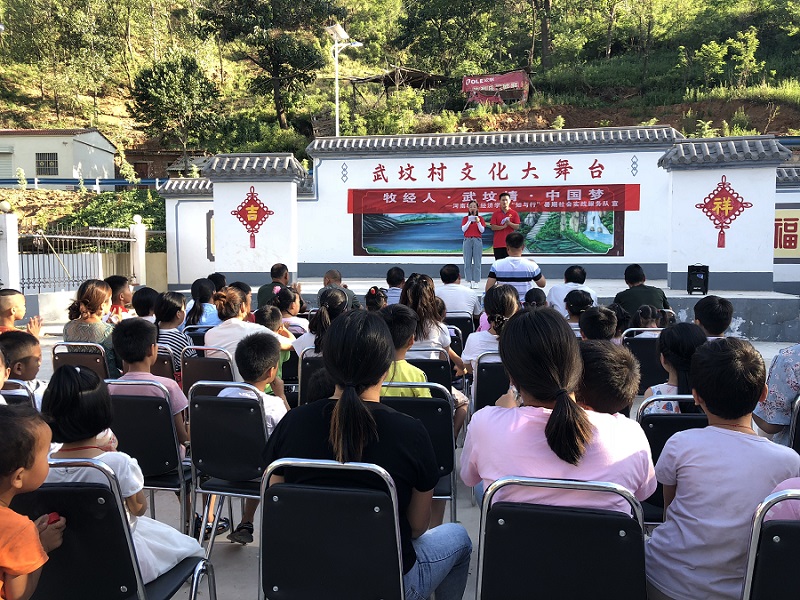 不知不觉,暑期社会实践活动已接近尾声,为丰富武坟村村民的精神文化生活,展示本次”三下乡“支教活动的实践成果,7月6日下午6:00,在公司辅导员聂丹老师、付文凯老师的指导下,暑期社会实践队员与村民们共同举办了以“牧经人·武坟情·中国梦”主题支教成果展示暨文艺汇演活动。武坟村驻村第一书记卢鑫、村支部书记李邦森、村委主任张书民、村委委员贾红绪、李海朝、贾广朝参加了此次活动,暑期社会实践队员崔洋,王晨晨担任此次汇演的主持人。