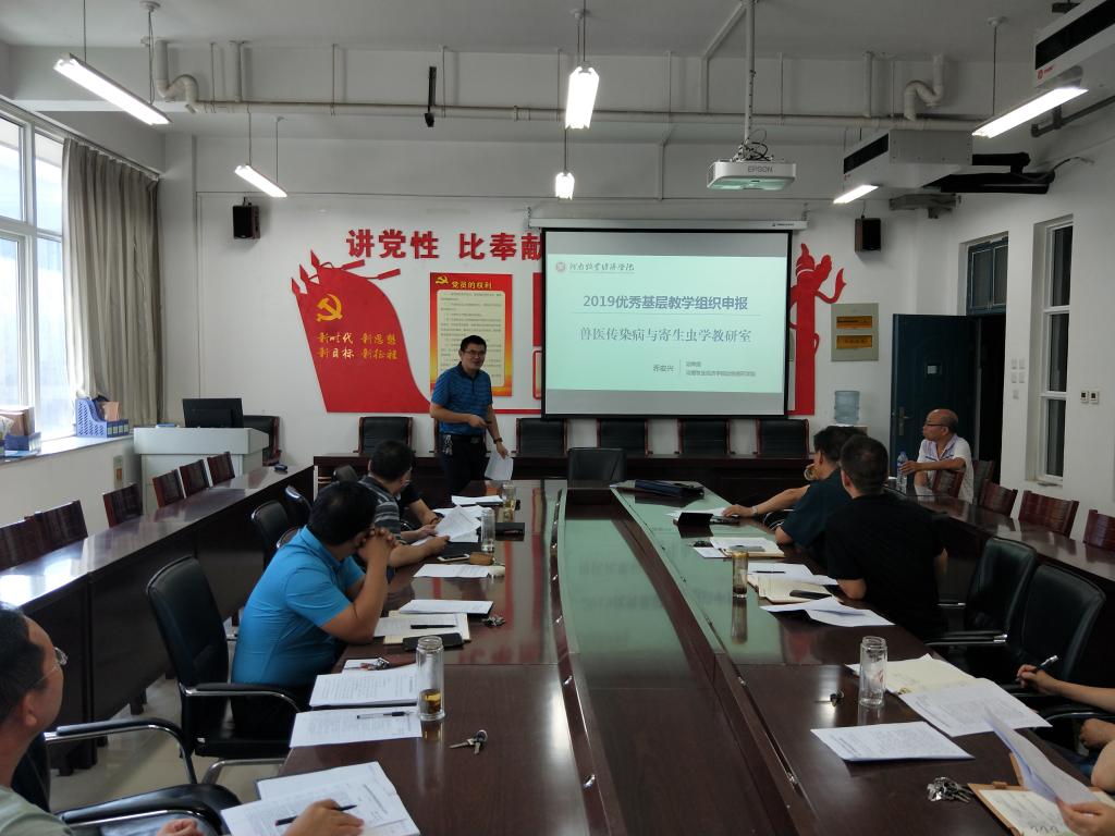 宋经理首先领学了河南省高等公司优秀教学基层组织认定标准,要求全体教研室必须全部达到合格标准,争创优秀教学基层组织。接着,经教研室主任汇报、民主测评等程序,从提出申请的三个教研室中推荐兽医传染病与寄生虫病学教研室代表公司参加公司2019年度河南省优秀基层教学组织评选。最后,宋经理对公司期初教学检查工作进行了部署。
