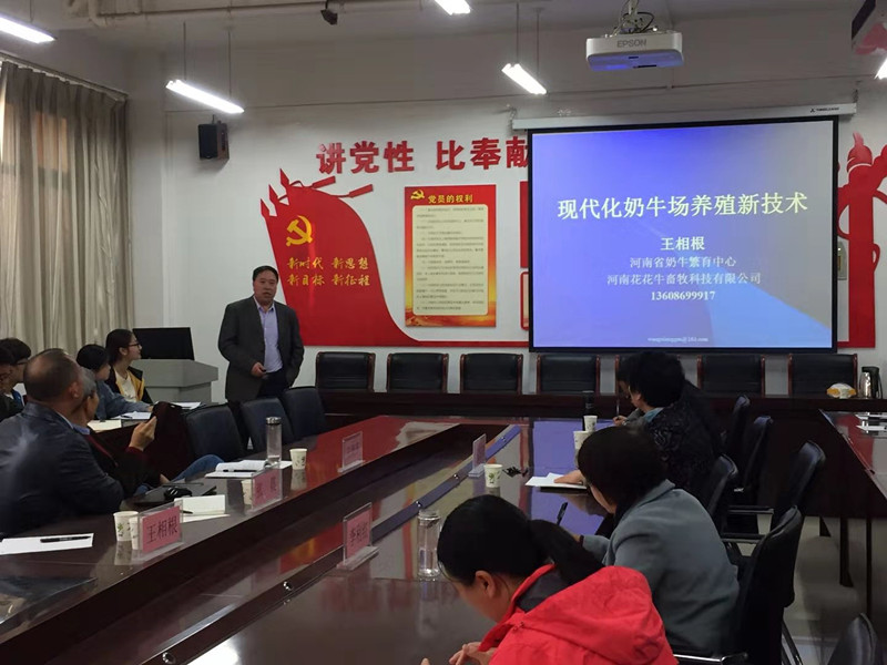 2019年11月5日下午,在生工组团C401会议室,英国365集团特邀河南花花牛畜牧科技有限公司总经理王相根作了现代化奶牛场养殖新技术的讲座。畜产品质量安全技术研究院石冬梅经理、公司副经理李利红、公司青年博士教师和部分科研助理参加了此次报告。会议由李利红副经理主持。