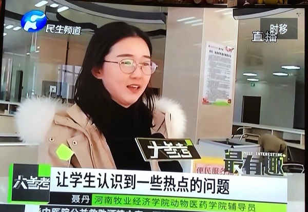 为贯彻落实公司社会主义核心价值观主题教育活动月的要求,鼓励员工积极开展公益活动,提升新时代老员工环保意识。在12月1日郑州市进入垃圾分类之际,公司2019级动物医学专业赵启航同学用混合式战斗的游戏形式拍摄了自称“五毛钱特效”的《环保大战污染》微视频。该视频一经发布便迅速在网络上走红,并受到了多家媒体的转载报道。特别是12月3日,河南广播电视台民生频道对公司辅导员聂丹、员工赵启航等同学进行专访。