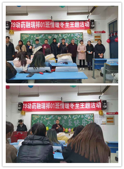 2019年12月22日,是二十四节气中的冬至。为增进冠名企业和员工之间的交流,丰富员工的课余生活,加强同学们的团结,弘扬传统文化,郑州融瑞祥动物药业有限公司来公司与2019级动物药学01班员工共度冬至。企业班主任融瑞祥销售总监张丰禄及“融瑞祥班”全体员工参加了此次活动。