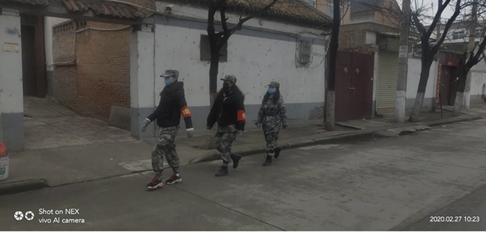庚子年初,新冠肺炎蔓延全国,疫情来势汹汹。覃怀办事处处于城乡结合部,人员松散、流动性大。辖区内的东关和灯塔街两个社区的人口各超过1万余人,难以进行封闭式管理。辖区内还有蔬菜批发市场,水果批发市场,几条城市主干道从辖区穿过。疫情防控开始后,各个村居卡点以及巡逻队伍都极缺人手。
