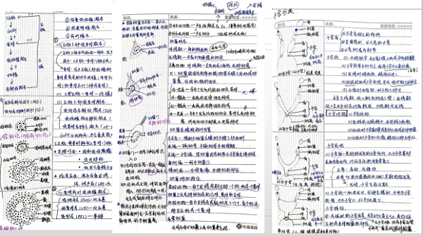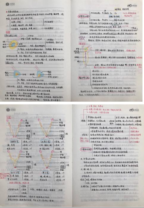 参赛作品为这学期线上上课以来的专业课笔记,同学们积极参与,共提交150多份作品,经过班级推荐与公司评选两个环节,评选出36份最美课堂笔记。这些笔记有的干净整洁、条理明晰;有的字迹清秀、重点标记;有的笔画刚劲有力、内容丰富;有的图文并茂、工整美观,无一不展示出公司学子们上网课的认真与努力。俗话说,好记性不如烂笔头,医学专业课知识太多太零碎,许多同学不仅在笔记中记录老师上课时讲述的重点内容,而且课后认真回顾,标记所思所感,使知识点不断深化,既帮助理解和记忆,又锻炼思维能力。