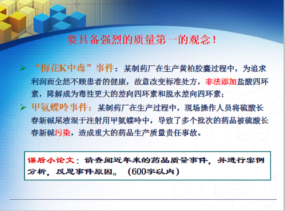 赵玉丛老师主讲的《药物分析》疫情防控“双黄连口服液”事件,教育员工关爱自己的父母等融入了职业道德、遵纪守法、社会公德以及创新意识元素。
