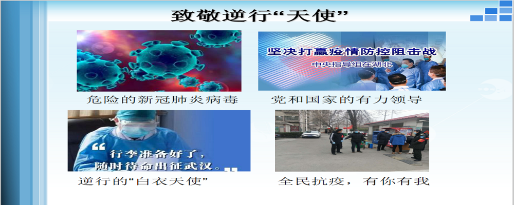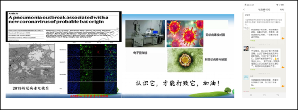 落实“课程承载思政,思政寓于课程”的理念,一是以疫情防控中我国展现出来的大国风范、科学研究快速反应、白衣天使逆行而上、普通大众自觉遵守隔离等等为事实例证,重点突出爱国主义教育,坚定“四个自信”,培养他们振兴中华的责任感和历史使命感,成为开学第一课大家共同的主题。二是深入挖掘专业课程所蕴含的思政元素,以疫情涉及的相关知识作为课程教学典型案例,促进课堂互动的科学性与思想性同向同行。