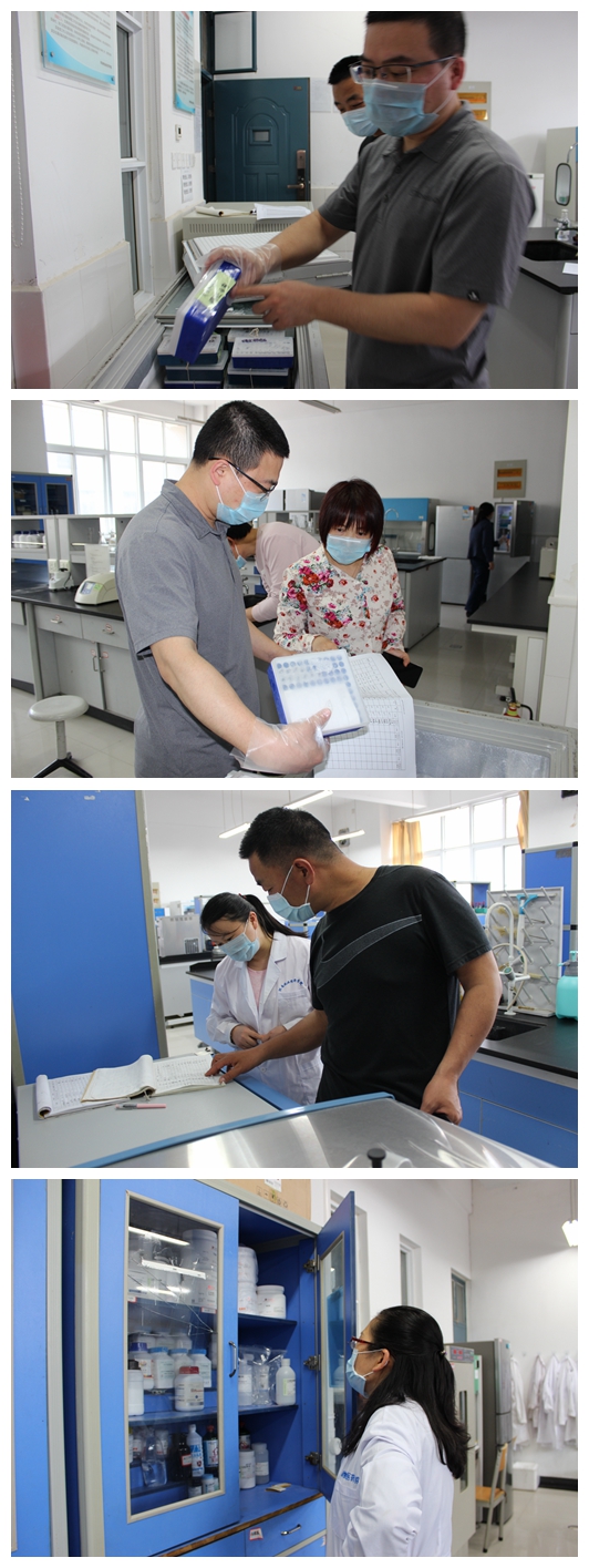 2020年4月30日,为确保疫情期间实验室安全运转,公司开展实验室安全检查工作,宋予震经理、汤法银副经理、李利红副经理、实验教学管理中心主任郭素琴老师参加了此次检查。