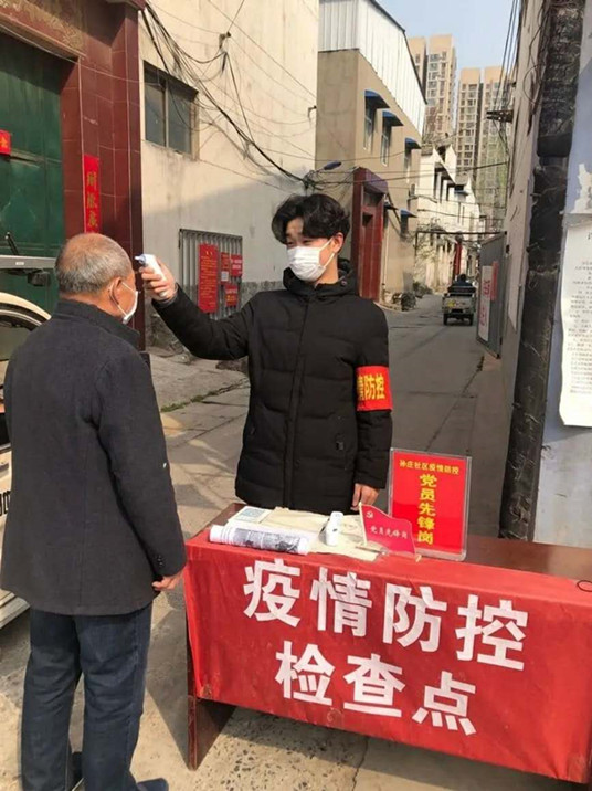 唯有艰辛,方显勇毅。面对突如其来的新冠状肺炎疫情,丁昊同学放弃假期,不顾危险,主动请战,挺身而出,夜以继日的奋战在疫情防控第一线,积极参与场所消毒,宣传教育,值班站岗,入户排查,来往登记测量温度等各项工作,彰显了青春蓬勃的力量,受到了人民群众的广泛赞誉和各级领导的高度认可。他勇挑重担、不惧风雨,织密疫情“防空网”,共筑生命“防护墙”,他用实际行动践行了一名时代新青年的誓言,为构筑疫情防线贡献了青春力量。就让青春在这一刻无悔绽放吧,相信疫情终将过去,胜利即将到来!在这里,口罩遮住了脸,但是遮不住浓浓的情意!病毒无情但人有情,为大家舍小家,也让自己的青春拥有一段不平凡的经历,倍感荣光!
