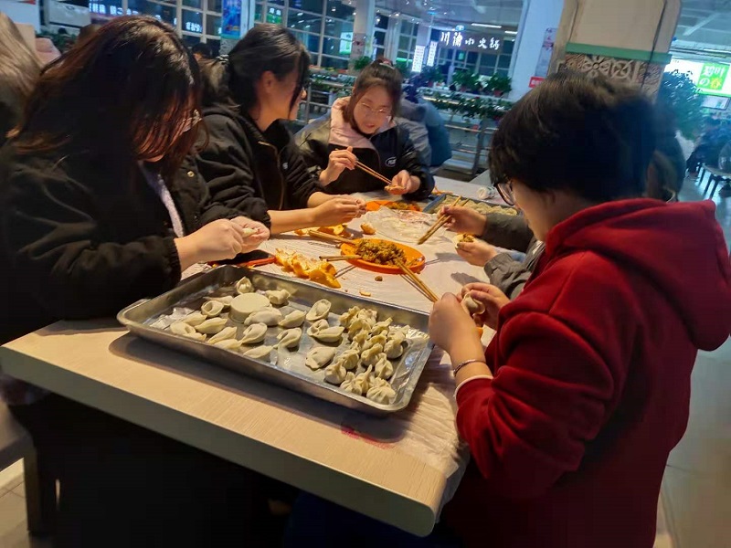 为迎接传统佳节“冬至”的到来,让同学们在集体中感受节日温馨,增进师生交流,12月20日19:00,公司党委副书记汪洋、辅导员谷茜茜、付文凯与同学们一起在醒园餐厅开展了“迎冬至,包饺子”主题活动。