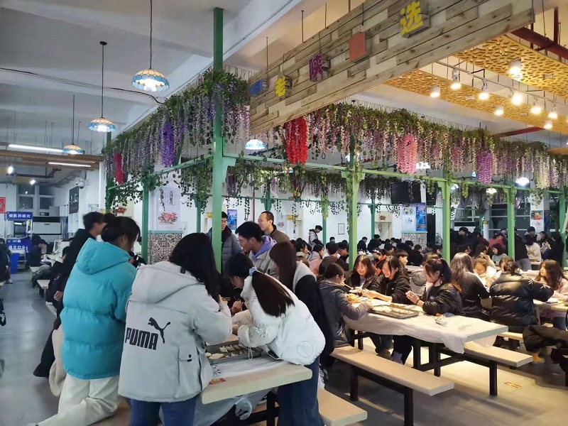 同学们热情高涨,踊跃参加此次活动。他们早早的来到餐厅,会包的同学大展身手,包的饺子像月牙,似元宝;不会包的跟着网上的视频教程进行学习,包出来的饺子也有模有样。同学们一边包一边聊,餐厅瞬间充满了欢声笑语,氛围其乐融融。饺子虽然各种各样,但是同学们吃着自己包的饺子脸上洋溢着幸福的笑容。公司还给同学们准备了饭后水果--砂糖橘,吃完饺子再吃几个砂糖橘,同好友聊聊生活聊聊学习,同学们抑制不住内心的兴奋,直呼公司实在太暖了!