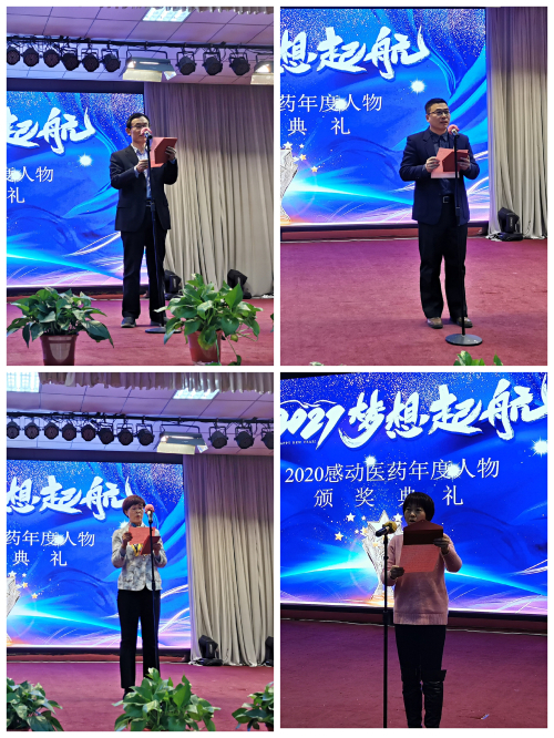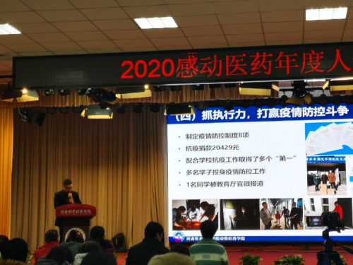 公司开展首届“感动医药”年度人物评选活动,在广大师生的广泛参与和推荐下,共产生了霍军、李德印、乔宏兴、马霞、吕玉金、张晓战、胡佩佩、井汇源、刘玲玲、付文凯10位感动医药年度人物。他们分别在2020年疫情防控、教书育人、科学研究、迎评促建工作中做出了突出贡献。他们用自己的行动诠释着对公司、社会的一分责任;用自己的故事,解读着人与人之间的真善美;用自己的汗水,弹奏出热爱知识、追求真理的美丽乐章,给人们带来感人至深的心灵震撼。颁奖典礼现场庄严而又隆重,10位人物依次登台领奖,向老师们展示了他们的感人事迹和高贵品格。现场通过颁奖人宣读颁奖词、发表获奖感言等形式,生动再现了10位年度人物获得者的先进事迹,真挚的话语,感人的场景,打动了在场的每一位观众,整个现场掌声不断。