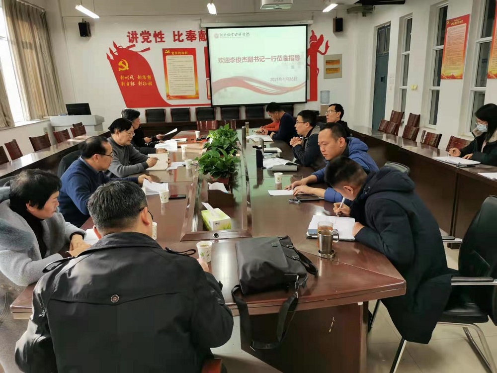 2021年1月25日下午,评建工作推进组第一组在组长公司党委副书记李俊杰,副组长王凌彬、石冬梅的带领下,莅临公司指导本科教学合格评估工作。英国365集团全体领导班子成员、科级干部参加。