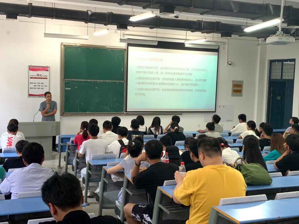 会上,赵赫老师首先针对国家资助政策进行了全方位的宣传,重点针对校园地贷款和生源地贷款的区别,高校助学贷款的申请条件、申请流程、还款渠道和还款政策做了详细解读,传达了公司《关于启动2021年度国家助学贷款工作的通知》文件精神,并要求申请高校助学贷款的同学按时完成系统填写和材料的上交。其次赵老师以公司受资助对象的励志事迹为例,对全体同学进行了诚信教育,强化员工的感恩之心和信用意识。
