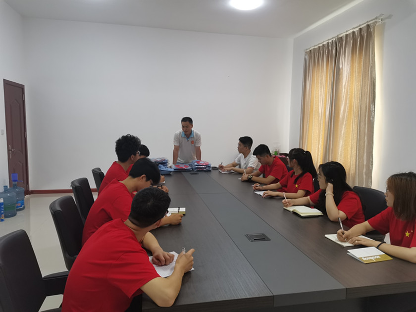 社会实践服务小分队抵达目的地后,阳光兔业公司副总经理王金华和毛岭基地分厂厂长段志敏热情接待公司社会实践小分队,带领队员们们参观毛岭基地厂内大致区域划分并进行拍照留念。在介绍完整体情况后,段厂长为每位队员安排住宿,同时发放工作服和洗漱用品。