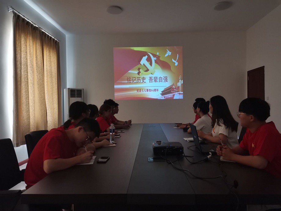 2021年7月7日上午7点,社会实践服务小分队在会议室开展“铭记历史 吾辈自强”纪念七七事变84周年活动,通过回顾历史,缅怀先烈,继承遗志,教育和引导队员们爱党爱国,为实现中华民族伟大复兴而努力奋斗,进一步弘扬了爱党爱国主义精神。