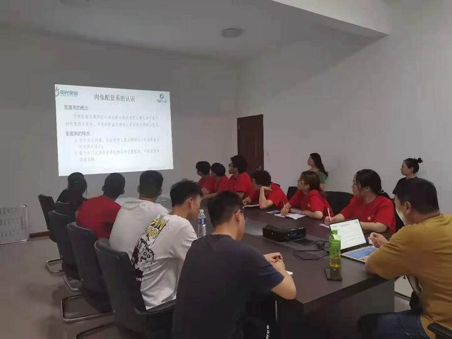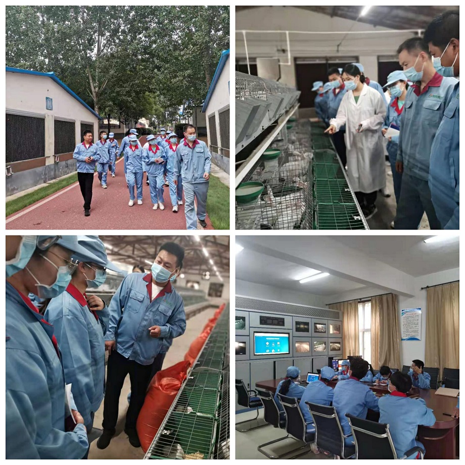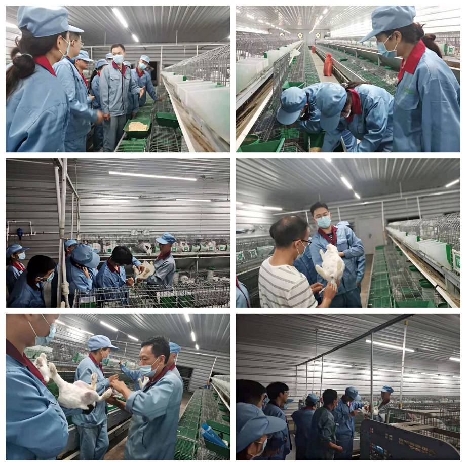 早上八点,队员们在各自师傅的带领下继续开展实践活动,对种兔进行疫苗注射,对仔兔进行日常管理比如喂奶和补奶,并对仔兔进行选留,将个头小、生长缓慢的仔兔淘汰。队员们集体观摩学习了对母兔的人工授精,并在师傅的指导下亲自动手完成整个操作过程。下午,暑期社会实践全体队员到南山基地进行参观学习,队员们在南山基地技术厂长崔克的带领下对兔舍进行参观,并在崔厂长的讲解下学习了阳光兔业特有的49天全进全出生产模式。崔厂长还亲自为队员们讲解了阳光智慧兔综合管理系统,使学员们清楚了解到数据化管理对现代化企业的重要性。晚上阳光兔业育种中心副主任段文涛为队员们开展学习培训,从肉兔配套系的认识、全进全出生产模式及意义、伊普吕的繁育路线图和特征优势、兔舍环控对养兔的意义、关于无抗养养殖的研究和探讨、规模生产中数据化管理的意义六个方面进行了深入讲解,使队员们对阳光兔业有了更加清晰深刻的了解和认识。