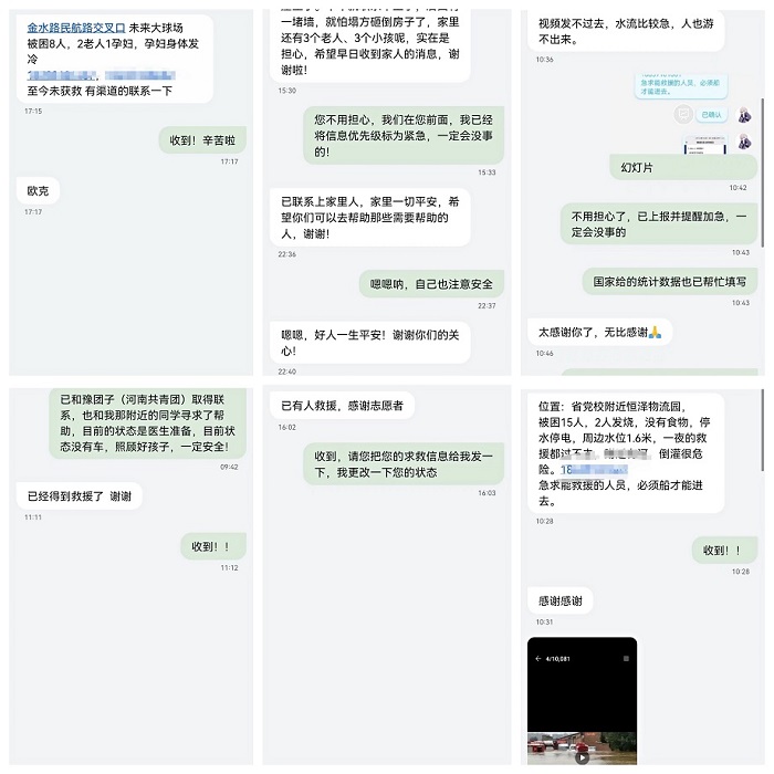 20级动物医学6班员工朱剑坤自暴雨开始后,陆续发现周围出现的求救信息后,他忽然意识到,“我一定得做点什么!”虽然自己被困在家中,但是作为青年老员工,应该在灾难面前贡献自己的一份力量,在保证个人安全的前提下,发挥所长。朱剑坤第一时间加入到志愿者团队后与群内志愿者们一起进行求助信息核实,成为一名帮助核实消息的在线志愿者,不断拨打一个又一个求助的电话,去连接起他人生命的桥梁,一个,两个,三个......直到凌晨四点半朱剑坤才短暂的休息了一会儿。接下来的两天里同样的工作朱剑坤同学日夜值守,不断完成各方发来的求助信息核实工作。朱剑坤说“大家守望相助,让人感觉真的非常温暖。我庆幸和我战斗在一起的,是共和国的新时代的青年人,我们闪耀勇气和爱,为苦难中的人民照亮前路,我们一直在寻找光,但当黑暗来临时,我们忽然发现,原来我们就是光!”