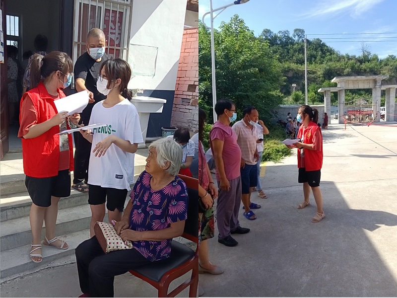 20动医02班的吴思淇同学,家住河南省灵宝市故县镇桃村。当面对疫情再次反扑,她义无反顾地加入当地疫情防控站点,和其他志愿者一起走上街头,到交通路口、商铺超市、农贸市场等人员较多场所,进行疫情防控、疫苗接种和文明健康知识宣传,引导广大村民服从疫情防控管理,出门戴口罩,勤洗手、常通风、少聚集,主动接种新冠疫苗,维护全民核酸检测的现场秩序。她讲到:“一场千年一遇的特大暴雨,河南地区化为一片泽国。暴雨过后再遇疫情反扑,身为一名老员工,更是土生土长的河南人,心痛之余,我更需要加入疫情防控志愿者队伍,为抗击疫情献出一份薄力。热心帮助别人的感觉真好。虽然天气很炎热,也会有些累,但看到村民们的笑容,收到医护人员的夸奖,感觉一切都很值得。”