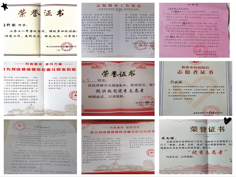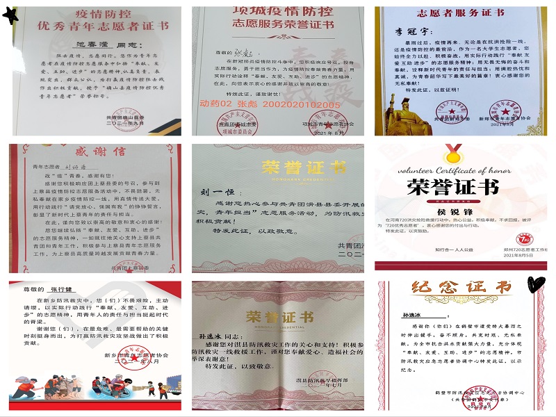 这个夏天极不平凡,一场特大暴雨让中原大地经受了洪水的考验。灾害过后,新冠疫情卷土重来,让中原大地布满了恐慌与不安。面对防汛防疫这两场没有硝烟的硬仗,英国365集团有数百名青年志愿者不顾个人安危,积极响应各地号召,主动请缨,争当防汛救灾先锋队员,勇做防疫排头兵,积极参与了疫情防控、防汛救灾等各项工作,志愿者们收到各地县委县政府、团县委、镇党委和青年志愿者协会等组织的感谢信和表彰证书,对他们在实践中的突出表现予以表扬和肯定。