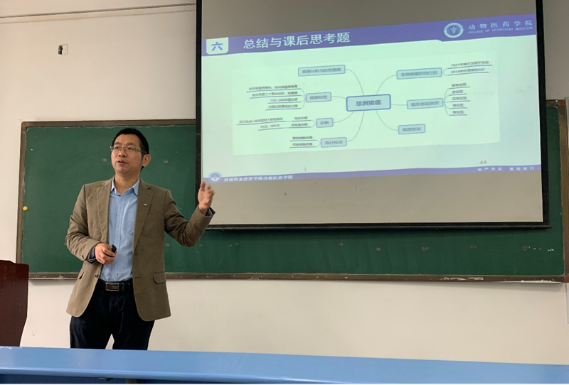课上,彭老师首先反馈了上节课的随堂测验情况及重难点分析,引导员工对重难点内容理解和掌握。随后,以图文并茂方式和非洲猪瘟疫情导致郑州双汇屠宰场停产的案例,引出本次课程内容,员工上课状态以及互动良好。其中融入非洲猪瘟的病原特点、症状与病变,该病应该如何防控等本章节重点内容,最后抛出问题,员工分小组进行讨论,促进员工对知识点的消化吸收。