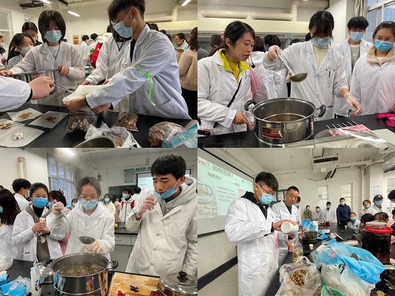 在中医运动与健康体验区,员工们跟着王炼老师“动”起来,切身感受以心运气、以气运身、振发四肢、贯通百骸。在中医义诊与服务体验区,同学们跟着付运星老师“静”了下来,望闻问切,静静感受中医诊疗的绝妙之处。中医针灸与推拿体验区内,员工们也异常感兴趣,王秀君和王雪飞两位老师耐心讲解的同时也让员工们现场体验了一把。还有阵阵药香飘来的中药煎汤与药膳体验区、中药花茶与药酒体验区、中药精油与香囊体验区,老师们现场准备了相应的药材和食材,现场讲解制作流程及其功效,让同学们感受到中药就和我们的生活息息相关,最后同学们品尝着自己动手煎煮的药膳、用秋梨熬制制作的棒棒糖等,拿着自己动手制作的中药香囊。员工们纷纷表示,中医药特别神奇、也特别有意思。19制药01班的李晶同学作为本次活动的员工助理,她表示自己从小就对中医药文化特别感兴趣,喜欢闻阵阵的药香,并且自己已经立志要考取中国药科大学的研究生,为弘扬中医文化贡献自己的力量。