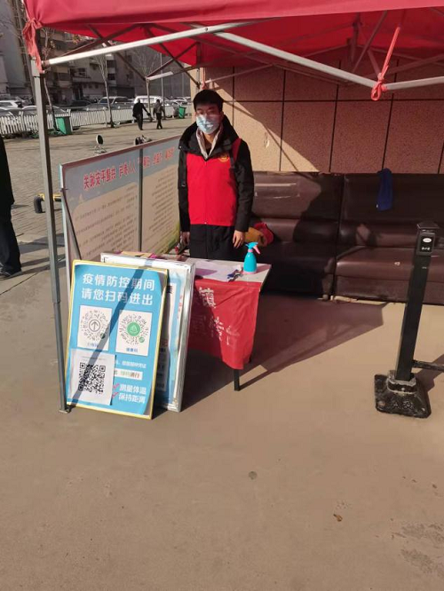 “您好,请出示一下行程码和健康码”。“请佩戴好口罩”。在周口市太康县城关镇西陈社区,20动医05的刘畅正忙的不亦乐乎。1月4日,在团县委发布招募令后,作为一名入党积极分子的她,积极响应号召,参加了疫情防控志愿活动。主要工作是在社区疫情防控卡点值班,对来往人员进行信息登记,测量体温,查验行程码和健康码等。她说:“志愿服务虽然很累,但也很开心。这段经历让我学到了很多,是我人生中不可多得的一份财富。这段时间下来,我体会到志愿服务并不是量个体温,登个记那么简单,而是培养了我的吃苦耐劳精神和毅力。”