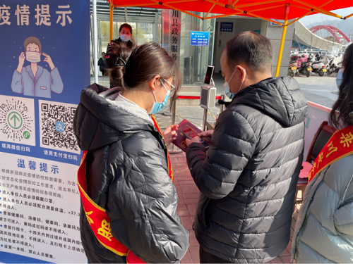 河南省洛阳市栾川县政务服务中心,公司21动医03的王艺格,按照单位要求,和另外几名返乡老员工,正在对业务人员的行程码、健康码查验,外地返乡人员的信息登记,以及排队群众的安全距离劝导。她表示:“志愿服务期间,面对各种各样的群众,我需要有足够的耐心,遇到各色各样的情况,我需要有灵敏的反应。在这里工作的几天,当我教会许许多多的老人找行程码,健康码后,我感觉自己很有成就感。在搀扶完步履蹒跚的老人下楼后,老人轻缓缓的一句:“谢谢你啊闺女。”这句话的说出,让我明白了志愿服务的意义:不仅是在服务社会,也在一次次付出中,收获着属于我的温暖。我的岗位也许普通,肩上的志愿服务标志也许很不起眼。但我也会发挥我微小的力量,服务好社会。”
