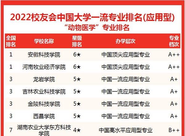 公司动物医学专业问鼎2022中国大学动物医学专业排名(应用型)榜首