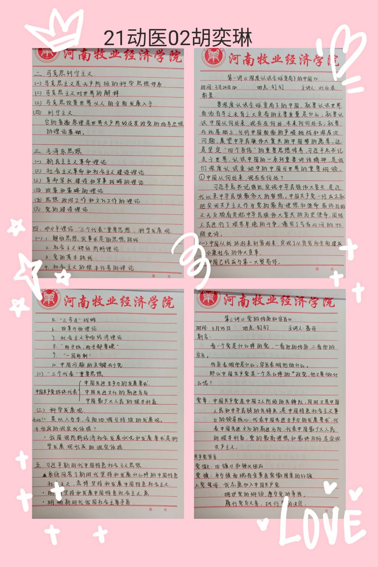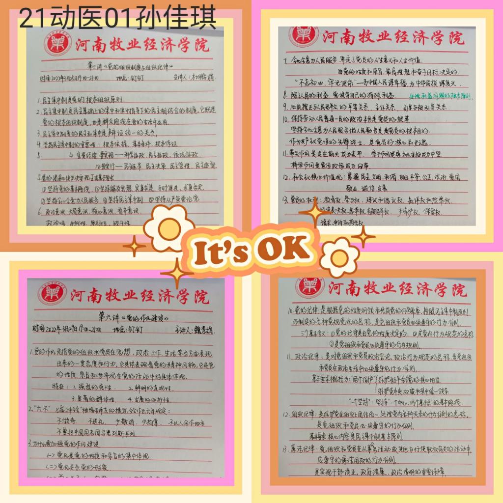 党课是支部“三会一课”的重要内容之一。定期的党课学习是开展党内活动的基本要求,也是党员教育的首要环节。笔记可以让我们突破头脑记忆储存知识的局限性,因此党课笔记能使我们对党的路线、方针、政策等方面有更系统化、关联化的理解。此次笔记评选展示活动,旨在使同学们熟知党课笔记的重要性,提醒广大入党积极分子不忘初心、脚踏实地的学习理论知识,端正学习态度,认真做好课堂笔记,提升学习质量。