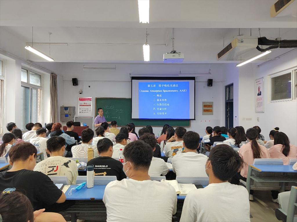 9月20日第7节,王新民老师在2号楼A410开展观摩课——《仪器分析》。本次授课内容主要是原子吸收光谱法。王老师深入浅出地引导员工掌握谱线轮廓变宽的因素、原子吸收定量分析方法、锐线光源等课程重难点。授课过程中,师生有效互动,分层教学明显,员工参与度高,教学效果良好。