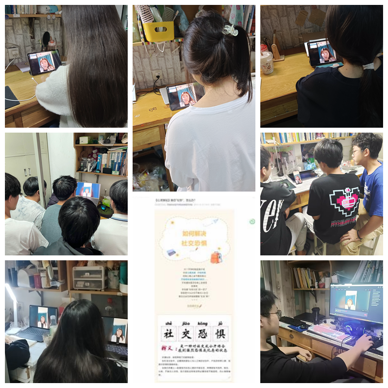 本次活动由校老员工心理健康教育中心老师主讲,涉及内容有《开学季吐槽大会》《走进充满爱的心理中心》《社恐怎么办?》《容易和人产生冲突?情绪不能自控的人,该如何自救?》《情感困扰倾诉大会》等专题讲座,宣传普及心理健康知识。同学们与主讲老师在线交流互动,老师为同学们指点迷津,弹幕不时弹出一句句“我明白了,谢谢老师”的背后是一颗颗被安抚的心灵,同学们释放了内心的压力,缓解了焦虑的情绪。除了组织员工观看直播讲座,公司运用院微信公众号新媒体平台,在心灵驿站版块发布心理健康教育的相关推文《如何解决社交恐惧》,帮助更多师生克服社交恐惧。正值疫情防控期间非必要不外出,同学们难免会有一些心理波动,借此帮助各年级同学舒缓心理压力,鼓励同学们以更好的状态迎接学习和生活中的挑战,提升心理素质,促进心理健康。