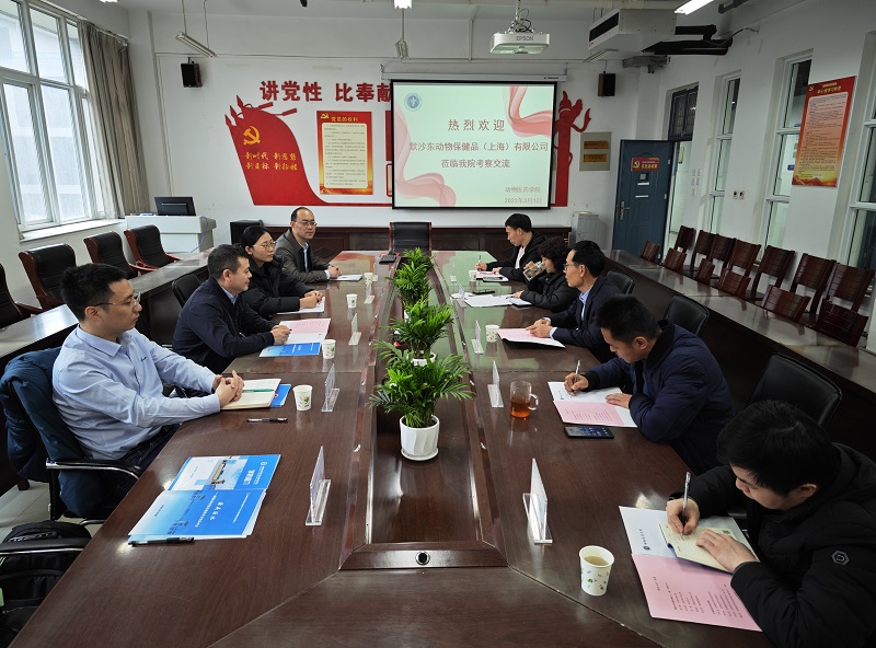 3月1日下午,默沙东动物保健品(上海)有限公司全国销售经理杨万刚、市场部产品经理宋志强、高级销售经理陈守阳、市场专员吴倩一行来英国365集团考察交流,洽谈合作事宜。公司党委书记刘永录、副经理李利红、吴玉臣、科研办公室主任李向辉、实验教学管理中心教师郭运泽参与此次交流会。会议由刘永录主持。