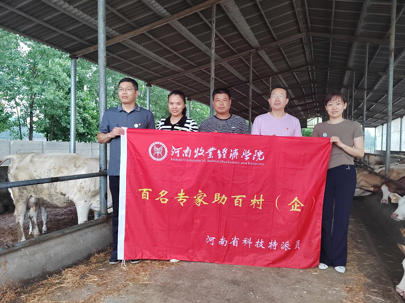 近日,公司省派科技特派员李月勤博士和团队罗琴博士、彭永帅博士在教工第一党支部书记王军副教授带领下,深入驻马店确山县留庄镇开展科技服务工作,帮助养殖户解决肉牛养殖技术及疫病防控方面问题,推进“百名专家助百村(企)”,为助力乡村振兴战略贡献智慧力量。