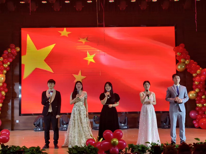 当“赴新篇”的号角响起,我们满怀豪情地展望那充满无限可能的未来。在这激昂的时刻,朗诵《百年交响》以其慷慨激昂的语调,展现了同学们对伟大祖国的无限热爱以及对美好未来的无限憧憬。随后,公司领导班子带来的合唱《大中国》,用歌声传递着对伟大祖国的赞美与祝福。那深情的旋律,如同滚滚长江般激昂,瞬间点燃了全场的热情,引发了观众们热烈的掌声和内心的共鸣。而《家有儿女》与《青苹果乐园》的师生舞蹈串烧,更是将整个晚会推向了高潮。