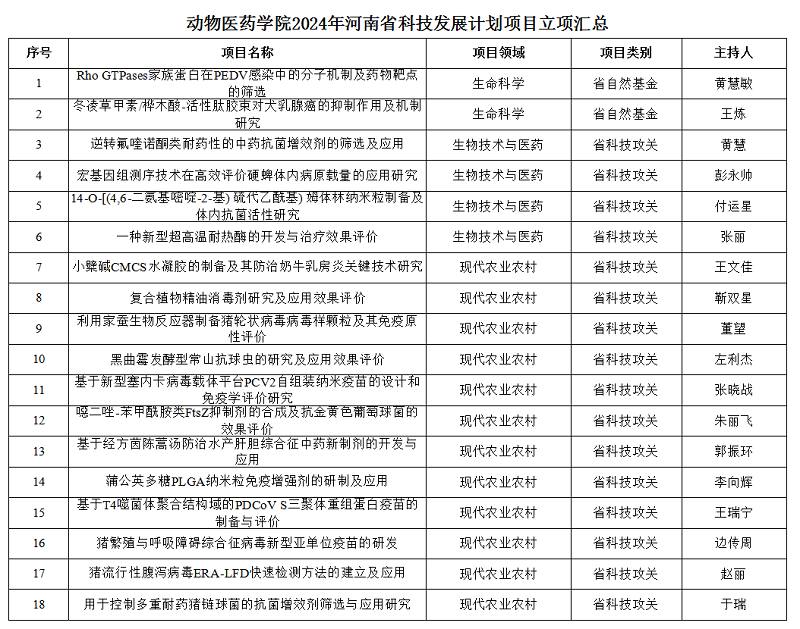 近日,河南省科技厅公布了2024年度河南省科技发展计划名单(豫科〔2024〕42号),公司有18位老师喜获2024年河南省科技发展计划项目立项,这是公司在省科技发展计划项目项目上的又一大收获。