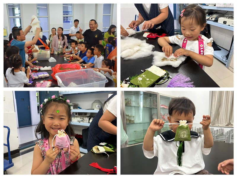 制作香囊,感受传统。香囊以锦制作,又称锦囊,我国古代素有佩带香囊之俗,端午节前后,人们除了吃粽子、插艾叶以外,还要给孩子们带上香囊。实验教学管理中心主任程茂高老师,为大家讲解了香囊制作的过程以及中药香料的主要成分和功效,让大家感受到中医的传统文化以及中药与生活的息息相关。亲子香囊制作环节让家长和孩子们深度互动的同时感受了传统文化的魅力。