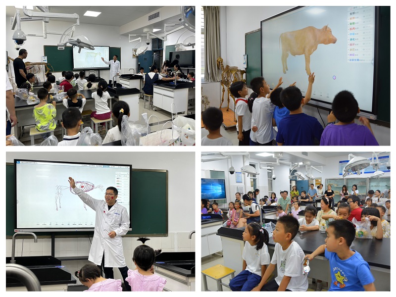 “徒手剖牛”,趣味科普。在善知楼C107实验室,基础兽医教研室彭永帅老师为亲子研学团带来了一场有趣的虚拟仿真实验项目体验课,生动的语言、真实的画面,让在场的孩子们真切感受到了科技的神奇与魅力。