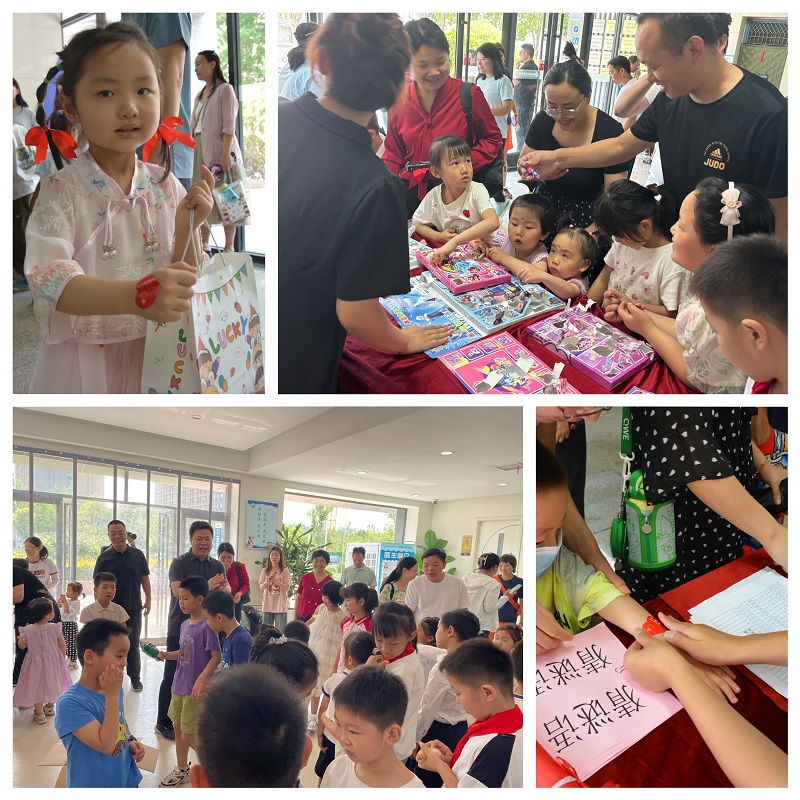 “福袋”猜谜,乐在其中。上午九点半,50余名孩子在家长的陪同下陆续完成签到,现场设置的抽盲盒、猜谜语等活动让孩子们感受到了浓浓的“六一欢乐”气息。孩子们带着好奇与期待扣开一个个小小的盲盒,像打开一个个神秘的“福袋,抽出了祝福,抽出了欢乐。